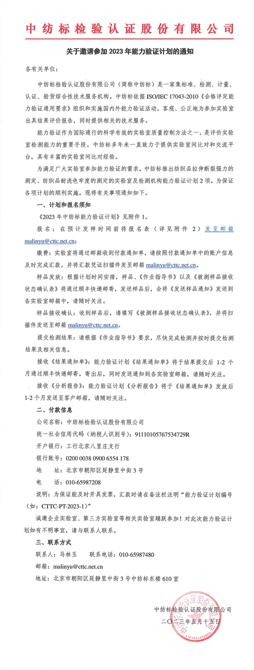 2023年中紡標(biāo)能力驗(yàn)證計(jì)劃邀請函
