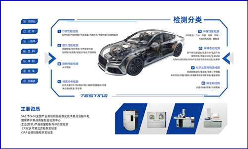 在本次展覽會(huì)上,浙江中紡標(biāo)展示了一系列針對(duì)汽車內(nèi)飾材料的檢測技術(shù)和服務(wù)項(xiàng)目。檢測范圍涵蓋了車門面板、座椅、車頂柵板、腳墊、地毯、內(nèi)飾裝飾件等多個(gè)方面,能夠?qū)Σ牧系牧W(xué)性能、耐久性能、燃燒性能、材料分析、環(huán)保性能、環(huán)境老化、化學(xué)及禁用物質(zhì)及微生物等進(jìn)行檢測。